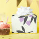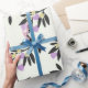 Valentins Tagesverpackungspapier mit ungewöhnlichen und niedlichen Bleistiftmustern. Schwarze Äste, Vanille-Blume und violette Herzen.