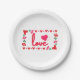 Diese Teller zeigen das Wort "Liebe" in einem einzigartigen Schriftart mit roten Buchstaben, rosa Kontur in einem rechteckigen Stil mit roten und rosa Motivherzen, Rose und Erdbeerherzen an zwei Ecken in diesem Valentinstag. Die Teller kommen in einem Set von acht Stück und sind auf haltbarem Papier gedruckt, ideal zum Servieren von Kuchen, Vorspeisen oder Salaten. Alle Teller sind FDA-zertifiziert für den Kontakt mit Lebensmitteln und die Sicherheit vollständig biologisch abbaubar und bedruckt mit pflanzlichen Tinten, die in den USA gedruckt werden.