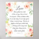 Wunderschönes Hochzeitsplakat mit inspirierendem Zitat Christliche Schrift zeigt ein elegantes romantisches, florales Aquarellbild mit zarten, weichen, rosa Blume und Grün. Es zeigt Bibel Verse 1 Korinther 13:4-8, "Liebe ist geduldig, Liebe ist freundlich. Es beneidet nicht, es prahlt nicht, es ist nicht stolz. Es ist nicht schmählich, es ist nicht selbstsüchtig, es ist nicht leicht verärgert, es behalte keine Aufzeichnung von Fehlern. Liebe erfreut sich nicht des Bösen, sondern freut sich über die Wahrheit. Sie schützt, vertraut immer, hofft, hält immer an. Liebe versage nie."