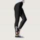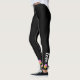 Volleyball-Liebe-Leggings aus Regenbogenfolie auf Vollschwarz. Text kann an Ihren Namen oder Ihre Jerseynummer angepasst oder in Anzug Ihres persönlichen Stils geändert werden. Beide Knöchelpositionen haben Text, der angepasst werden kann. Drei bunte Volleybälle rund um den Knöchelbereich.