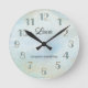 Wanduhr mit künstlerisch bemaltetem Meerwasserdesign mit (optional) goldfarbenen und blassfarbenen aquamarinen Zahlen.