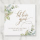 Elegantes "Lass Liebe Grow" Gastgeschenk Hochzeit Tag Design mit exquisiter Aquarell Eukalyptus Grünecke Details und der Phrase "Lass Liebe Grow" in goldfarbener, moderner handgeschriebener Kalligrafie. Personalisieren Sie dieses Design mit zwei Textabschnitten auf der Vorderseite für Namen(s) und Datum und einem anderen Abschnitt auf der Rückseite, um Ihnen zu danken Nachricht oder Pflanze/Saatgut Pflegeanleitung. auf der Rückseite. Mehrere Stiloptionen zur Auswahl. Teil unserer Kollektion "Elegant Greenery Eukalyptus Wedding and Events" mit einer Vielzahl von Produkten zur Koordination, einschließlich dieses gleiche Design für Samentasche.