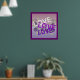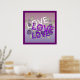 Blätter und Blume in Grau, Grün und Violett sind mit dem Wort "Liebe" in den gleichen Farben gewebt, um eine schöne Möglichkeit zu schaffen, die Botschaft zu verbreiten, dass Liebe ohne unsere Hilfe nicht wachsen kann.