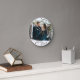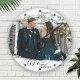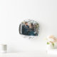 Wall-Uhr mit Ihrem individuellen Foto gerahmt von einer weißen flauschigen Kontur. Mit einem schönen Skripttext. Sie können das Stundenanzeigebild löschen, wenn Sie es nicht benötigen. Diese Uhr ist ein schöner Sake nach einer Weihnachts- oder Winterhochzeit.