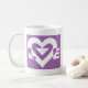 Ein grafisches Logo-Design, maßgeschneidert. LIEBE in Weiß auf lila.