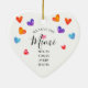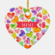 Mimi Weihnachtsschmuck mit einem Feld von bunten Wasserfarbenherzen. Die Rückseite unseres Ornaments kann mit Enkelnamen personalisiert werden.