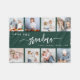 Gib Oma ein Geschenk, das sie schätzen wird. Diese Collage-Decke aus dem Foto enthält acht ihrer liebsten quadratischen Fotos der Enkel, zusammen mit der Meldung "Liebe, Oma." Das Wort "Großmutter" erscheint in einem eleganten, weißen Schriftsatz mit Schnörkeln am Anfang und Ende auf einem smaragdgrünen Hintergrund. Fügen Sie die Namen von bis zu vier Enkelkindern hinzu. Ein ideales Geschenk für Ferien, Geburtstage oder Großeltern.