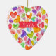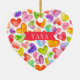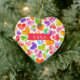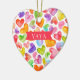 Yaya Weihnachtsschmuck-Design mit einem Feld von farbenfrohen Wasserfarbenherzen. Die Rückseite unseres Ornaments kann mit Enkelnamen personalisiert werden.