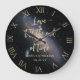 Eine moderne, einfache, elegante, personalisierte Hochzeitsuhr oder Relationship-Jubiläumsuhr mit moderner Typografie und einem goldenen Pinsel (nicht echte Folie) auf der Uhr und der Schrift auf einem strukturierten schwarzen Hintergrund mit einigen diskreten Glitzern. Der Titel, in der modernen Skriptkalligraphie, sagt "Liebe bis zum Ende der Zeit". Sie können die Namen, das Hochzeitsdatum und den Text personalisieren. Ein schönes, individuelles Hochzeitsgeschenk oder Jubiläumsgeschenk für ein junges - und herzlich junges - Ehepaar, das sein 1., 3., 5., 10., 25. oder 50. Jubiläum feiert.