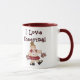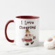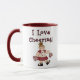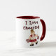 Eine blonde behaarte Cheerleader in einem roten Rock mit roten pom poms und rotem Text, der liest "mich das Liebe-Zujubeln!" wird auf Cheerleader T - Shirts, Tassen, Taschentaschen, Knöpfen, Karten, Aufklebern und anderen zujubelnden Einzelteilen gekennzeichnet!