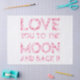 NewParkLane - Niedliches, romantisches Tissue, mit Zitat: "Liebe dich zum Mond und zurück!!" in lustiger, mutiger Typografie, mit Text in verschiedenen Farbtönen und Größen rosa Herzen. Ein schönes Design für den Valentinstag oder einen anderen romantischen Anlass. Karo diese Auflistung für passende Elemente aus.