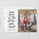 Diese Valentinerkarte enthält den Satz "Liebe auf den Mond und zurück" in einem schwarzen Skript-Set auf weißem Hintergrund. Fotografie © Storytree Studios, Stanford, CA