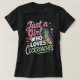 Dieses schwarze Kleidungsstück enthält den Text "Just a Girl WHO LIEBE Cockroaches" in einem spielerischen, farbenfrohen Schriftart, begleitet von einer Cartoon-Kakerlake, die eine Sonnenbrille trägt und einen Daumen hoch gibt. Kleine Herzen und Sterne schmücken das Design. Es ist ein sonderbares und humorvolles Design für jemanden mit einer ungewöhnlichen Wertschätzung für Insekten.