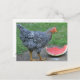 Diese Postkarte zeigt Janet die Henne, die nur Lieben Wassermelon!
