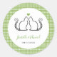 Liebende Katzen Herz Grün & Weiß Gingham Namen Classic Round Sticker.