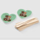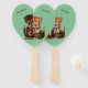 Dieser Handventilator ist minzgrün mit einem niedlichen liebenden Katzenpaar. Das Weibchen ist gelb und weiß gestreift, das Männchen braun. Weibliche Katze teilt Ratten aus ihrem holzgrünen Korb mit ihrem männlichen Freund. Passen Sie Ihre Namen mit den Vorlagen an.