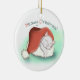 Liebenswürdiger Grey Cartoon Cat Snoozing in Santa Keramik Ornament