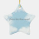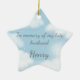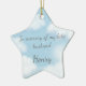 Dieser morbide lustige Ornament hat eine Szene himmlischen blauen Himmels, traumhafte Wolken, funkelnde Sterne und die Worte "In Erinnerung an meinen verstorbenen Mann [Name einfügen]." Die Rückseite des Ornaments überrascht mit den Worten "Besser spät als nie!" Sie haben die Möglichkeit, ein individuelles Foto Ihrer Ehefrau (oder Fantasiefrau) einzufügen, die aus dem Himmel auf Sie herabschaut.