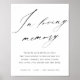 In Loving Memory Sign - ein einfaches und elegantes Schild, das Sie an Ihrem Gedenktisch für Ihre Hochzeit platzieren können, oder die Ehrung von verstorbenen Lieben. Personalisieren Sie auf Wunsch mit den Namen Ihrer verstorbenen Lieben.