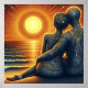Liebespaar bei Sonnen Untergang am Meer Poster
