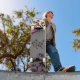 Liebesvögel auf Sakura-Baum und das Symbol der chi Skateboard