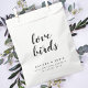 Einfache, stilvolle Hochzeitsnacht-Tasche in modernem minimalistischem Design mit handgeschriebener Schrift-Typografie in Schwarz/Weiß in einem informellen lässigen Stil. Der Text kann leicht für ein einzigartiges Design für Ihren besonderen Tag personalisiert werden. Die perfekte Gastgeschenk Hochzeit für Natur- und Vogelliebhaber (Wildvogelsamen sind nicht inbegriffen)!