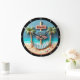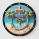 Beachte Wall Clock mit entspannender Hängematte und Palmenbäumen Dekoratives Uhrendesign mit einer ruhigen Strandlandschaft mit Hängematte, Palmen und Blick auf den Ozean, die Entspannung und Küstenvibes weckt.