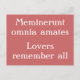 Eine dunkelrosa Postkarte mit lateinischem Zitat und die englische Übersetzung darunter. "Die Liebenden erinnern sich an alles".