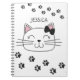 Dieses weiße Notizbuch verfügt über ein hübsches Cartoon-Kätzchen mit einem niedlichen Band auf dem Kopf und ein paar Fußabdrücke von Katzenpaws. Einfach anpassbar, indem Sie Ihren Namen hinzufügen.