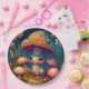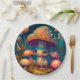Liebliche niedliche Elfen spielen unter Pilzen und Pappteller