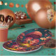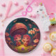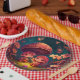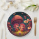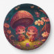 Liebliche niedliche Elfen spielen unter Pilzen und Pappteller