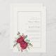 Reiche rote Blumenelemente über einer schönen Aquarellfarben-Leinwand in zarten Grün- und Elfenbeintönen, mit eleganter Schriftzeichen-Kalligraphie vollendet.. die Braut- und Bräutigam-Namen, sowie alle weiteren Veranstaltungsdetails hervorheben. Auf der Rückseite befindet sich ein Monogramm, das einem Wachs-Siegel ähnelt. Das Ergebnis ist eine elegante Hochzeitseinladung für jede Jahreszeit. Geeignet für lässige und elegante Hochzeitsmotive. Wenn Sie Unterstützung bei der Gestaltung oder Personalisierung wünschen, zögern Sie bitte nicht, mich per E-Mail auf dieser Website oder unter design@smkoehrn.com zu kontaktieren
