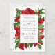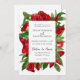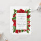 Ein Blumenarrangement befindet sich unter den Einzelheiten der Hochzeitsfeier für diese schöne rote Blume Einladung. Die Rückseite der Einladung ist ganz weiß.