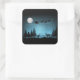 Liebliche Reindeer At Night Quadratischer Aufkleber