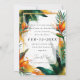 Die "Birds of Paradise Bliss Save the Date"-Karte ist ein faszinierender Einblick in die bezaubernde Feier, die noch kommen wird. Auf der Vorderseite zeichnet sich die Karte durch ein gepflegtes und elegantes Design aus, das die Namen des Paares, das wichtige Datum und den schönen Ort zeigt, an dem sich die Festlichkeiten entfalten werden. Der Hintergrund ist mit dem tropischen Reiz von paradiesischen Blume, üppigen grünen Blätter und zarten, gerade Linien geschmückt, wodurch ein visuell atemberaubendes und harmonisches Ensemble entsteht. Auf der Rückseite der Karte steht ein benutzerdefinierbarer Textbereich zur Verfügung. Hier können die Ehepaare ihre einmalige Touch mit ihren Namen und einer personalisierten Nachricht oder einem Teaser über die bevorstehende Feier bereichern. Dieser Raum dient als Vorgeschmack auf das kommende Großereignis und bietet den Empfängern eine Touch der Personalisierung der Save the Date vorstellbaren Karte und des Gebäude. Zusammenfassend lässt sich feststellen, dass die "Birds of Paradise Bliss"-Save the Date-Karte nicht nur durch ihr tropisches Design visuell fasziniert, sondern auch eine anpassbare Textfläche für die Ehepaare bietet, um eine persönliche Touch, Aufregung des Gebäude und Vorfreude für die bevorstehende Feier hinzuzufügen