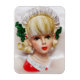 Liebliche Weihnachtsmädchen Kopf Vase Holly und Pe Magnet