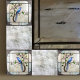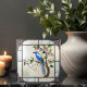 Der schöne Bluebird auf blühender Weinrebe ist mit einem Bluebird auf einer Rebsorte mit zarten Blume Knospen und Blätter auf Weiß mit einem Buntglaseffekt mit antiken Silberstreifen versehen. Viele Anwendungen für diese wunderbaren Keramiken Fliesen. Erhältlich in 2 Größen 4,25" x 4,25 " und 6" x 6". Ebenfalls verfügbar ist ein Spiegelbild.