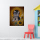 Lieblicher kleiner Hund und Sonnenblumen Poster