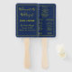 Schreiben Sie Ihr Hochzeitsprogramm auf diesem schönen blauen und gelben Fan. Benutzen Sie die einfach auszufüllenden Vorlagen für die Eingabe von Informationen. Personalisieren Sie Ihre noch heute!