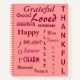 Dieses Notizbuch mit positiven Bejahungen hat einen rosa Hintergrund mit inspirierend Wörtern, die in bordeauxfarbenem Schriftart geschrieben sind. Schreibe Gedanken über Ermutigung, Kraft und Dankbarkeit drinnen. Bestelle noch heute!