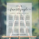 Chic mattiertes Acrylstühle-Diagramm für bis zu 12 Tische mit "Our Favorite People" in einfacher Typografie und einem eleganten Drehbuch mit Swashes, "We are so frohe you are here", und Ihre Namen und Hochzeitsdatum durch ein Herz verbunden.