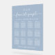 Chic dusty blue mattierte Acryl Hochzeitskarte signiert für bis zu 12 Tische mit "Our Favorite People" in schlicht weißer Typografie und einem eleganten weißen Drehbuch mit Swashes, "We are So frohe you are here", und Ihre Namen und Hochzeitsdatum durch ein Herz verbunden.