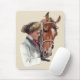 Diese Vintage Szene mit Pferd und Dame hat zeitlose Anziehungskraft für alle Reiter und Tierfreunde. Die Frau bietet eine Leckerei und genießt einen ruhigen Moment mit ihrem Lieblingspferd.