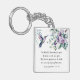 Ein wunderschöner Schlüsselanhänger mit inspirierender Zitatschrift zeigt ein hübsches, blumenfarbenes Design mit einem Kolibri, einem einfachen Lavendel und violetten Blumen und Pflanzen. Es zeigt ein ermutigendes Bibelverse-Lied von Solomon 2:11-12, "Denn siehe, der Winter ist vorbei; der Regen ist vorbei und weg. Die Blume erscheinen auf der Erde, die Zeit des Gesangs ist gekommen."