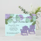 Lila und grüne Papierlampen auf den Adirondacksesseln, Beachthema Ruhestand Party Einladung.