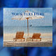 Liegestühle mit Sonnenschirm am schönen Strand.