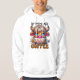 A playful and vibrant design showcases an adorable highland cow sipping coffee from a mug adorned with two hearts. A cheerful daisy adds charm to the scene, accompanied by colorful text that reads, "Life begins after coffee." This delightful design is featured on a variety of products, making it a perfect gift for coffee enthusiasts.