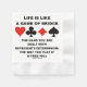 No need to love the game of bridge to understand this wry bridge truism saying. Saying says: "Life Is Like A Game Of Bridge - The Hand You Are Dealt With Represents Determinism; The Way You Play It Represents Free Will". Includes all four card suits. Bridge attitude for all bridge players on this memorable paper napkin for your next bridge-themed event!