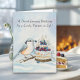Designed to honor a cherished life partner, this January birthday card features a serene winter scene with a Red-breasted Nuthatch adding a gentle touch to a vanilla cake topped with blueberries and raspberries. Hand-painted in watercolor and pen, it offers a thoughtful blend of nature, warmth, and artistic detail for her special day.