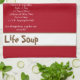 Waffelhandtuch ist rot mit weißem und braunem Text und Streifen auf einem skurrilen Handtuch mit einem niedlichen Saum auf Leben. Anpassen oder kaufen, wie es ist. Von all den lebendigen Soup Handtüchern, wird diese das Beste in anderen Farben für Sie anpassen, indem Sie Hintergrund auswählen.